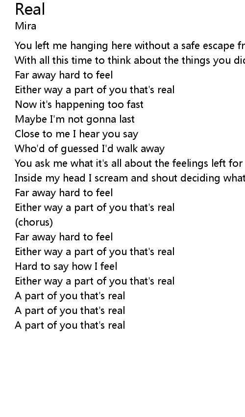 | Either way a part of you that's real | |