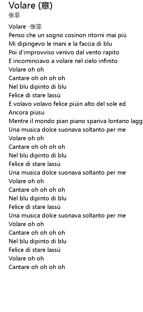 | [01:16.260] | E volavo volavo felice più in alto del sole ed |