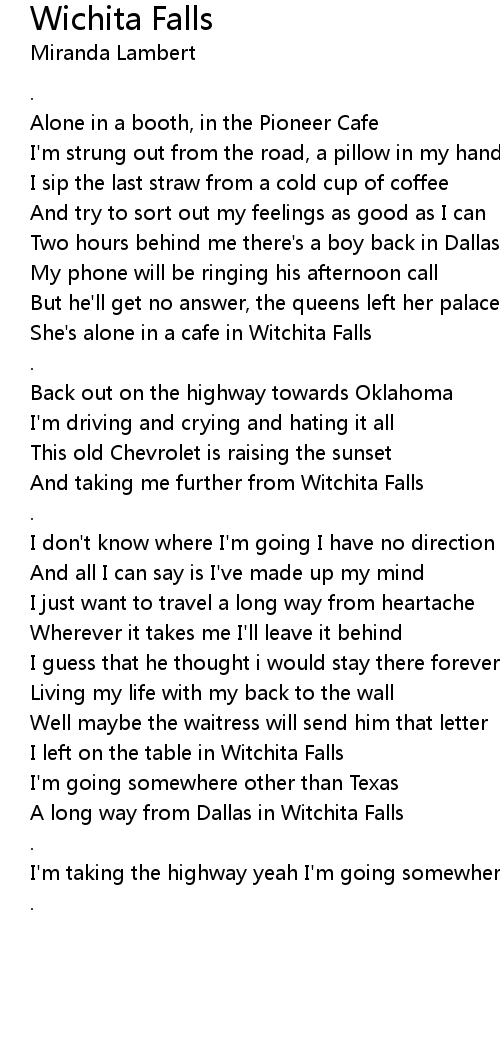 And taking me further from Witchita Falls |