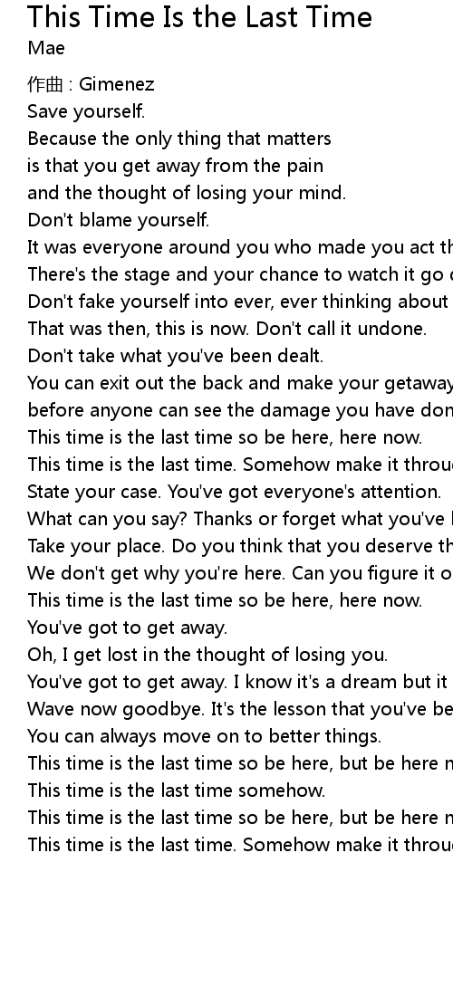 | 歌曲 | This Time Is the Last Time |