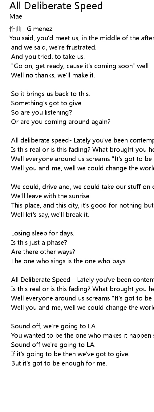 | All Deliberate Speed - Lately you've been contemplating. | |