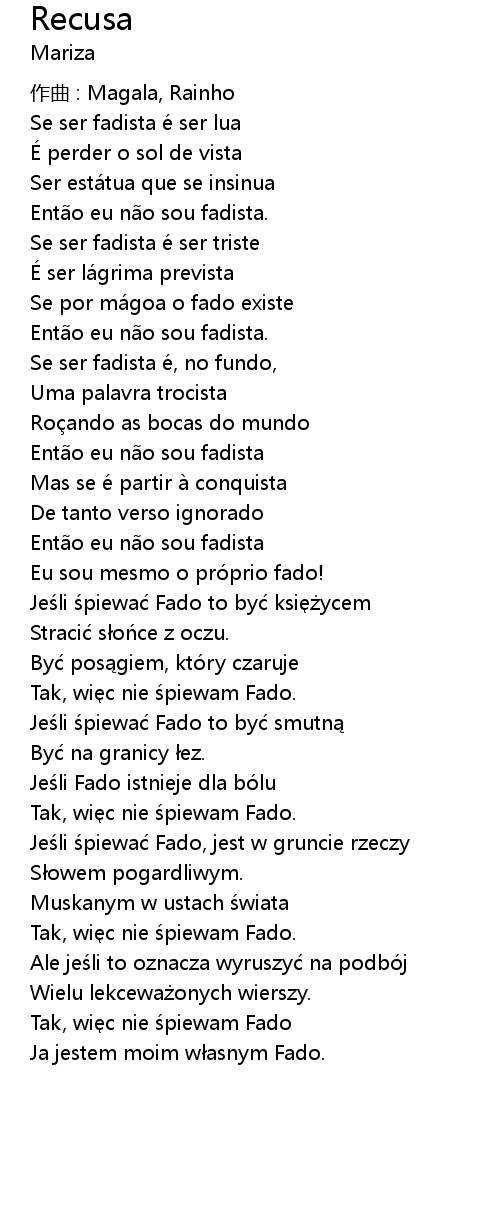 | 歌曲 | Recusa |