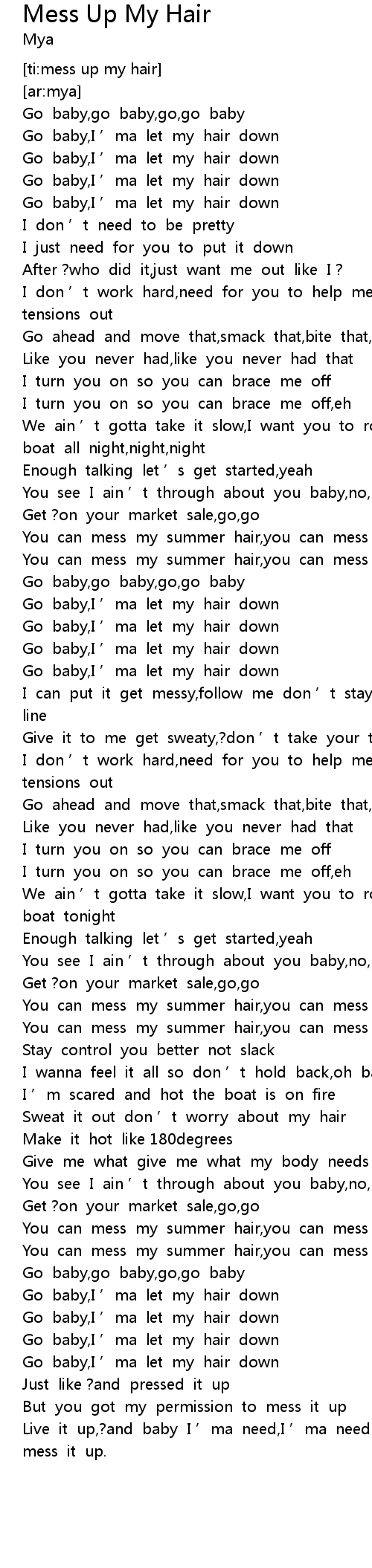 | [00:07.785] | Go baby, I ' ma let my hair down |
