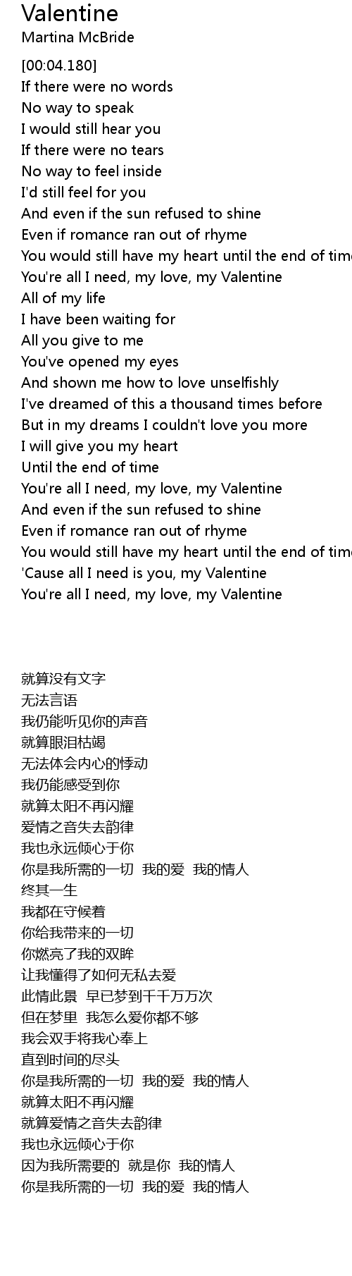 You're all I need, my love, my Valentine |