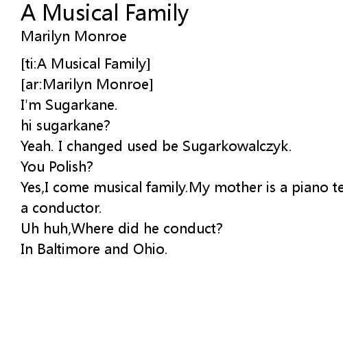| [00:10.110] | Yes,I come musical family.My mother is a piano teacher,my father was a conductor. |