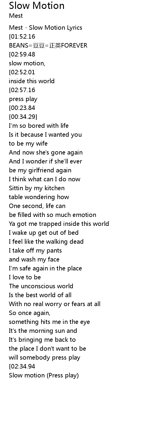 | [00:01.67] | Mest - Slow Motion Lyrics |
