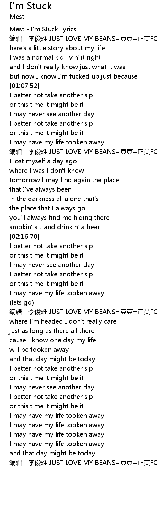 | [00:02.42] | Mest - I'm Stuck Lyrics |