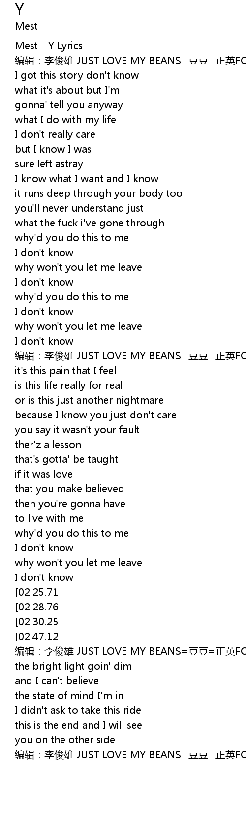 | [00:01.11] | Mest - Y Lyrics |