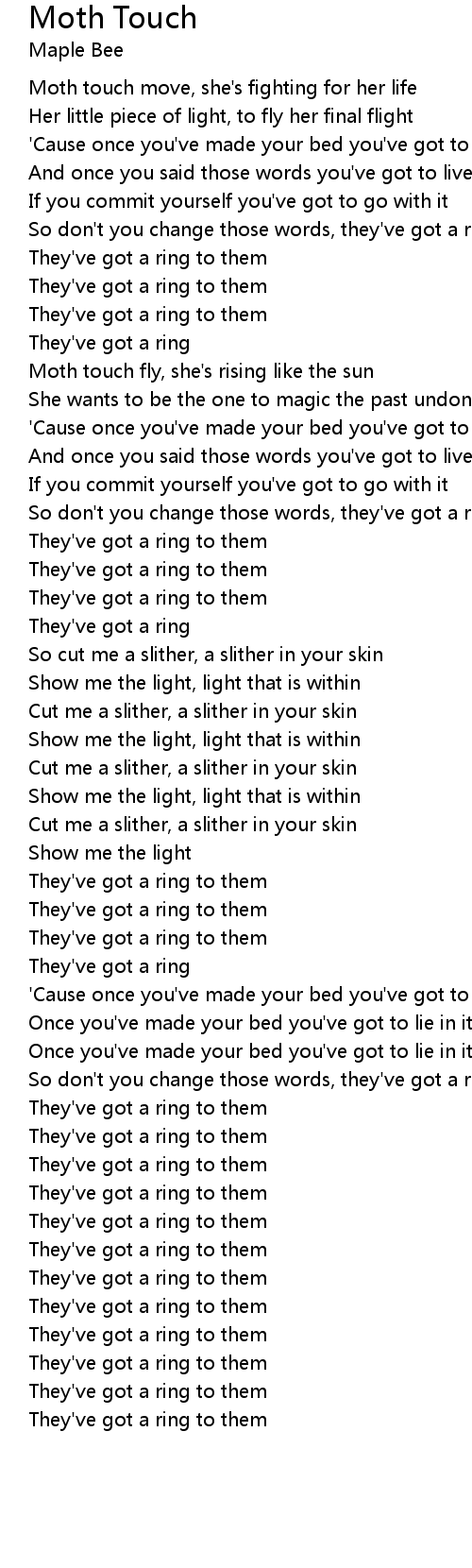 | [00:13.46] | Moth touch move, she's fighting for her life |