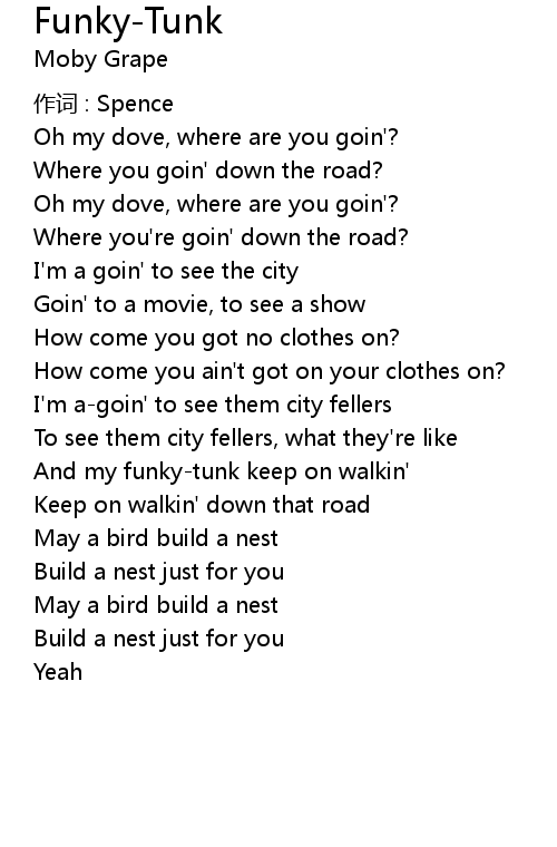 | And my funkytunk keep on walkin' | |
