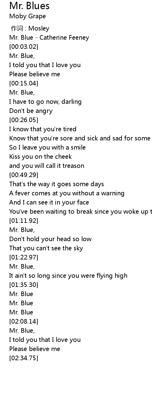 | [00:02.05] | Mr. Blue Catherine Feeney |