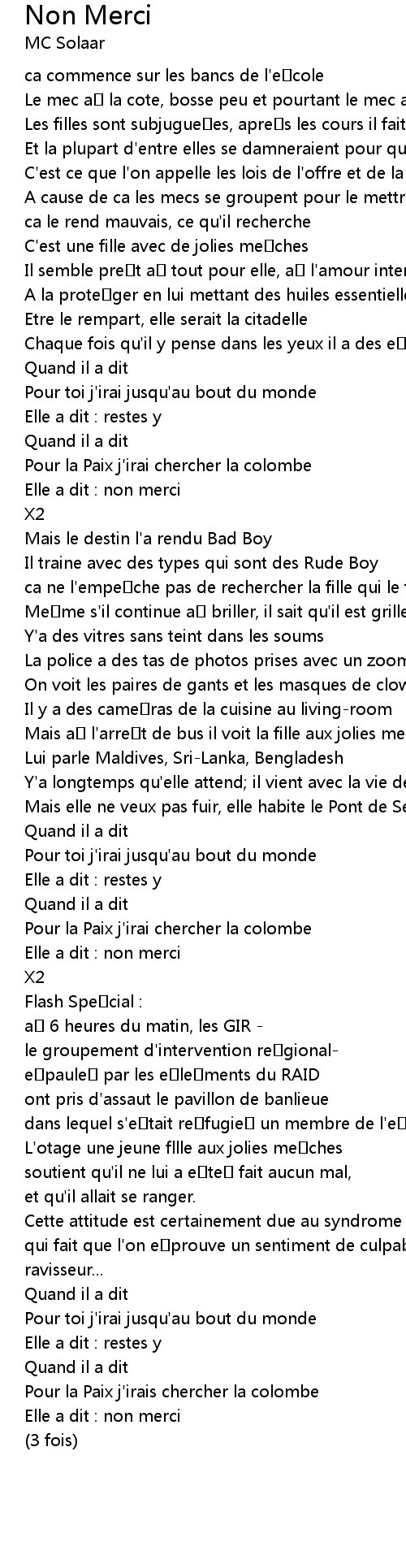 | [01:49.361] | Elle a dit : non merci |