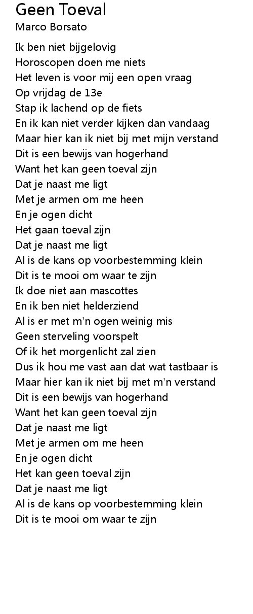 Want het kan geen toeval zijn |