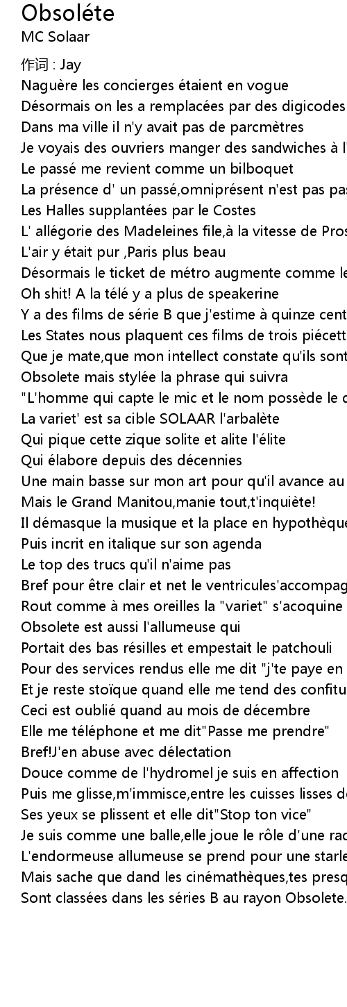 | Rout comme a mes oreilles la " variet" s' acoquine et rime avec Obsolete | |