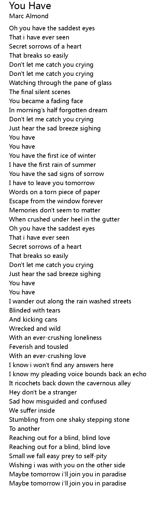 Oh you have the saddest eyes |