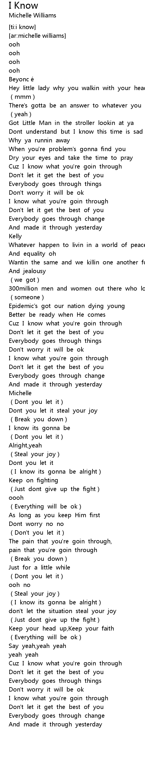 | [00:51.960] | Cuz I know what you' re goin through |