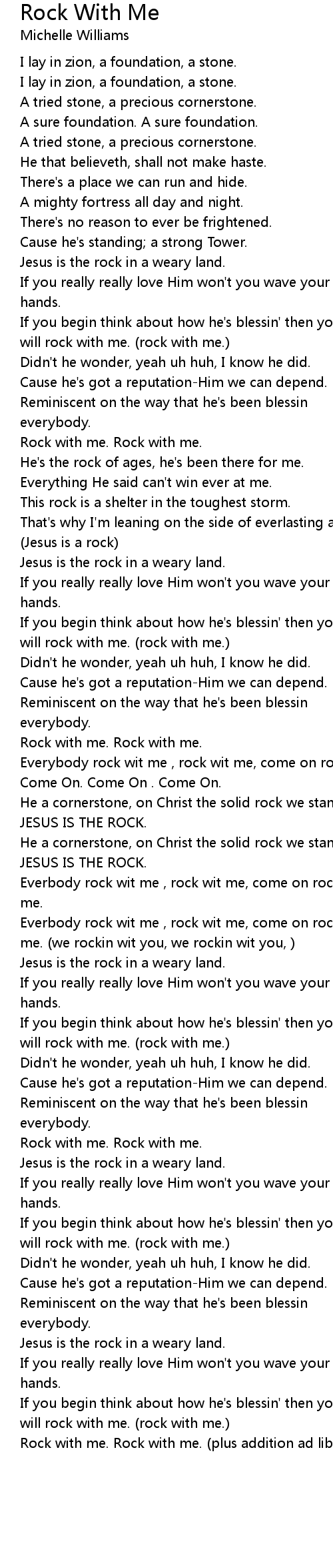 Rock with me. Rock with me. (plus addition ad libs) |