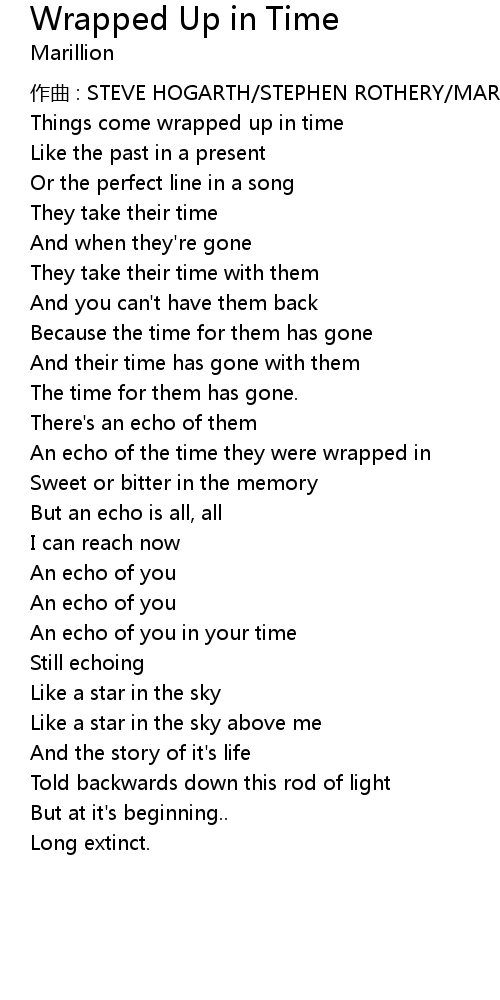 | 歌曲 | Wrapped Up in Time |