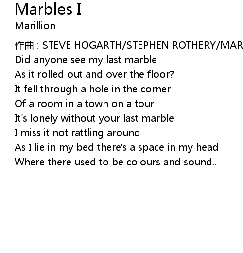 | It' s lonely without your last marble | |