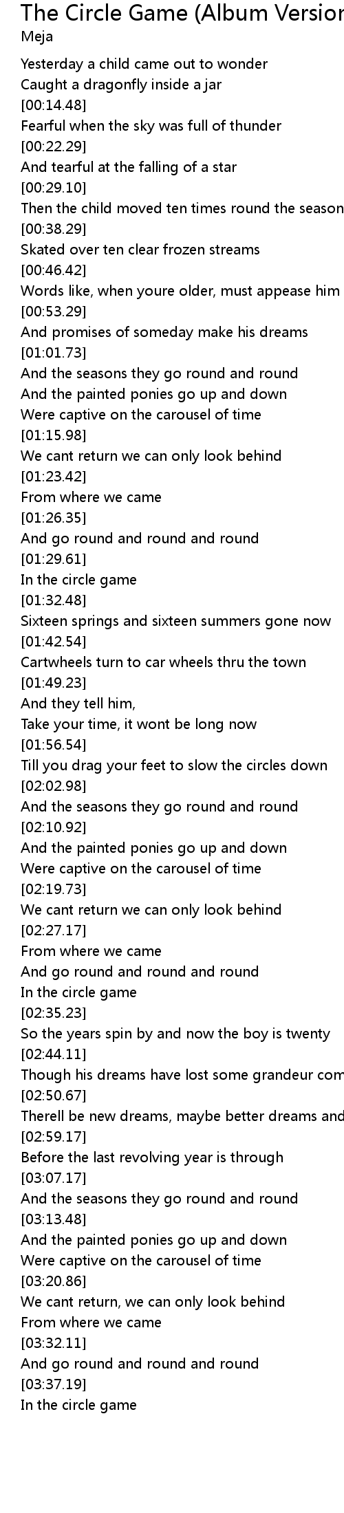 | [01:58.36] | Till you drag your feet to slow the circles down |
