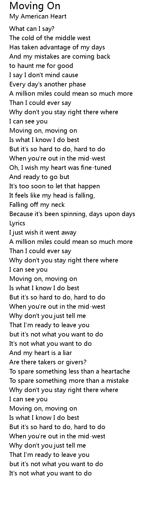 Moving on, moving on |