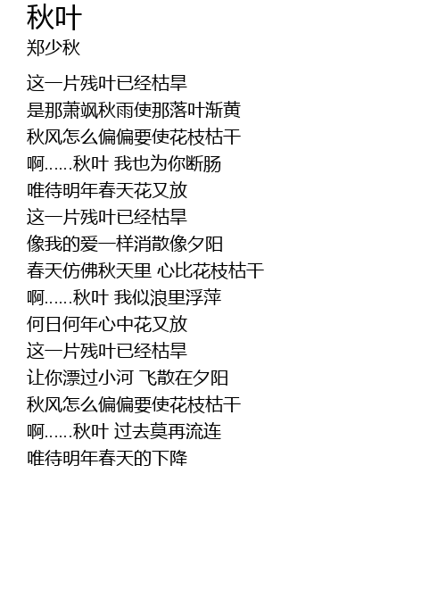 | [02:45.000] | 秋风怎么偏偏要使花枝枯干 |