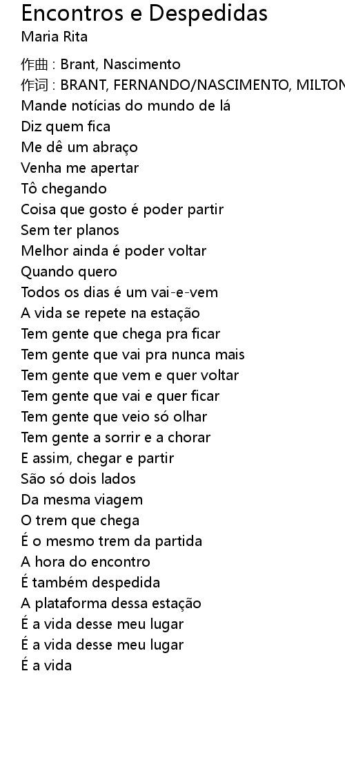 | 作词 : BRANT, FERNANDO/NASCIMENTO, MILTON | |