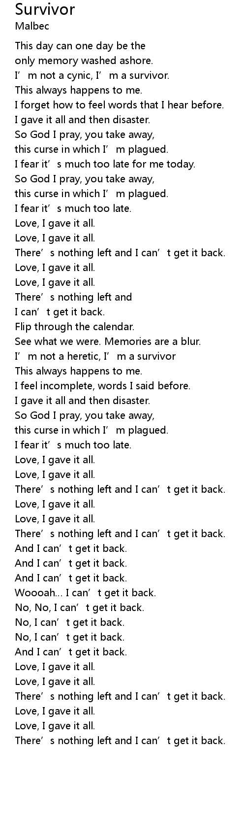 | [02:03:000] | There' s nothing left and I can' t get it back. |