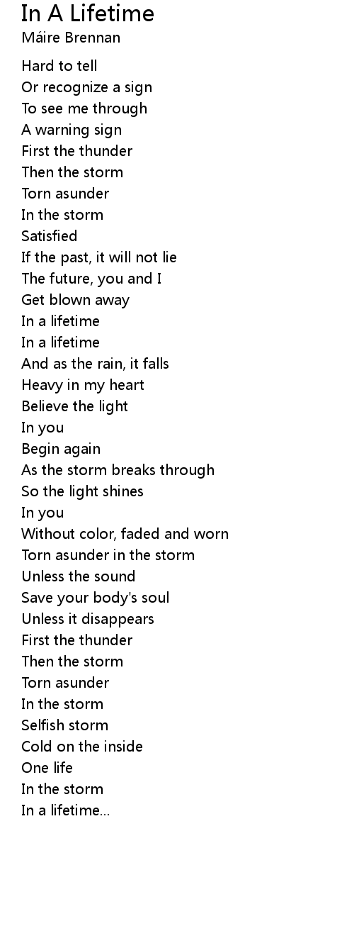 In a lifetime |