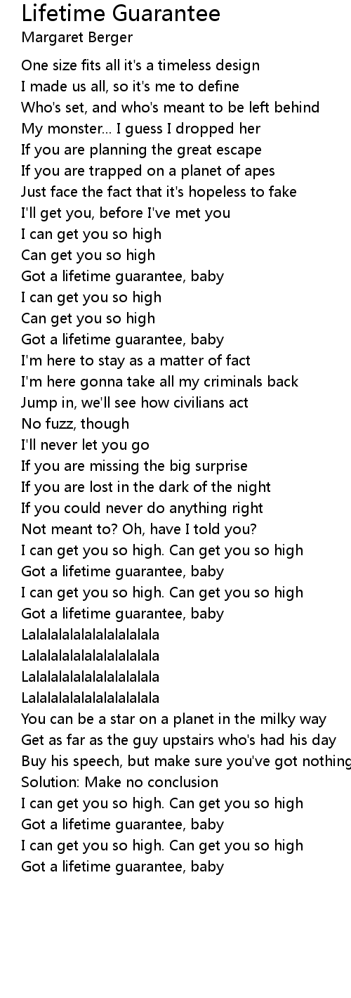 Got a lifetime guarantee, baby |