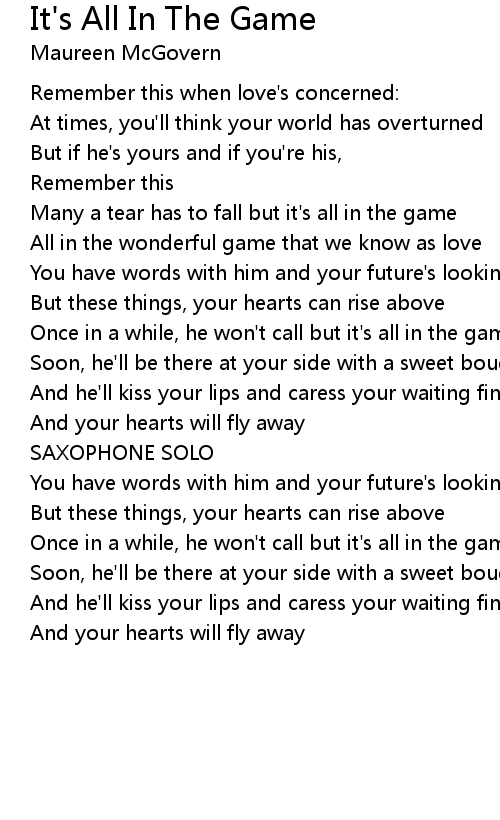 All in the wonderful game that we know as love |