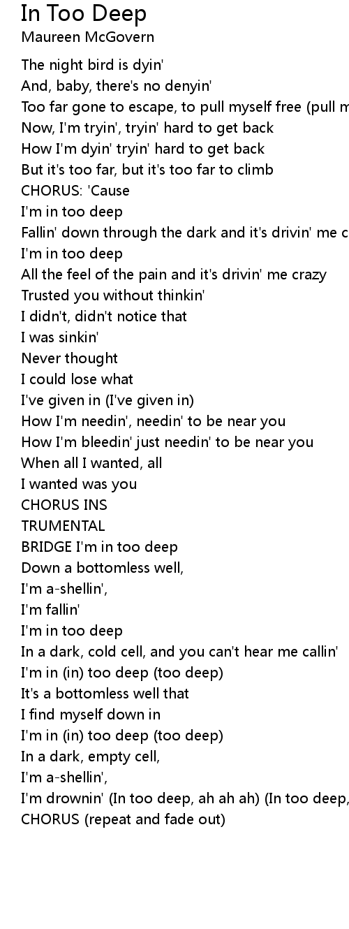 I'm drownin' (In too deep, ah ah ah) (In too deep, ah ah ah, crazy) |