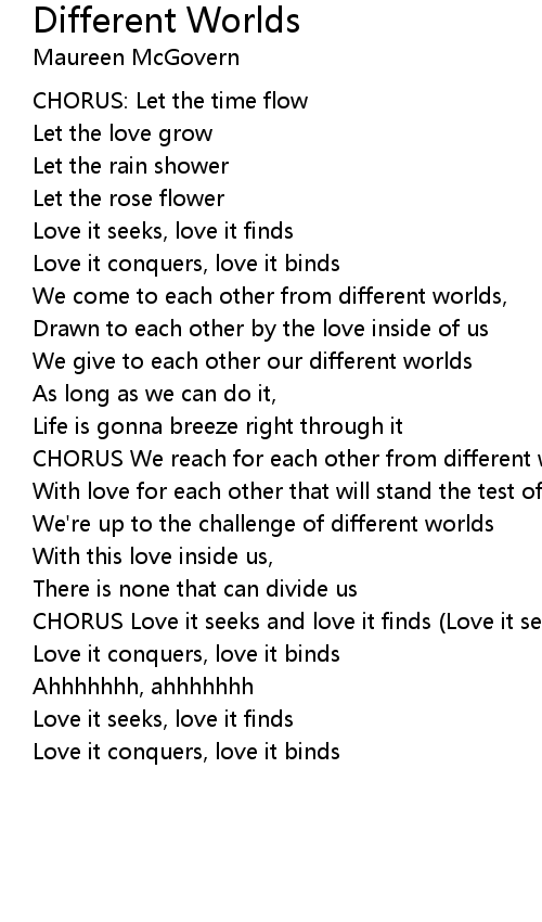 CHORUS We reach for each other from different worlds |