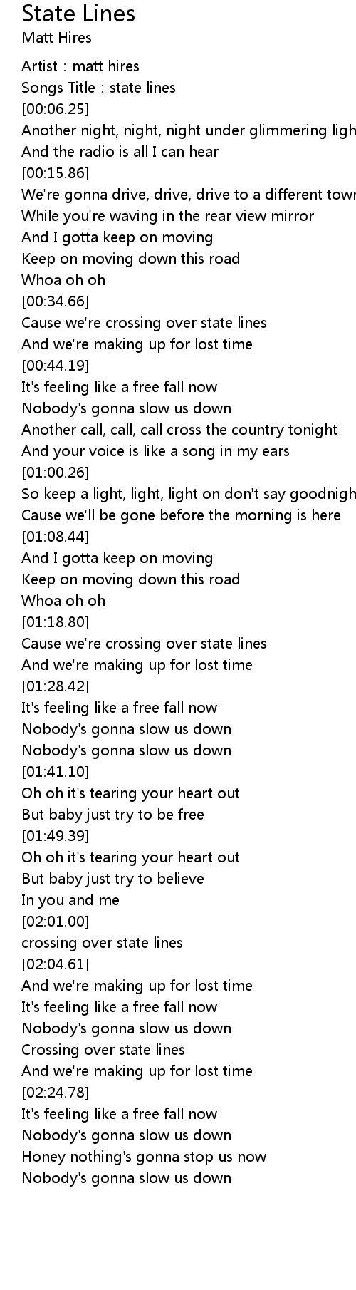 | [00:37.10] | Cause we're crossing over state lines |