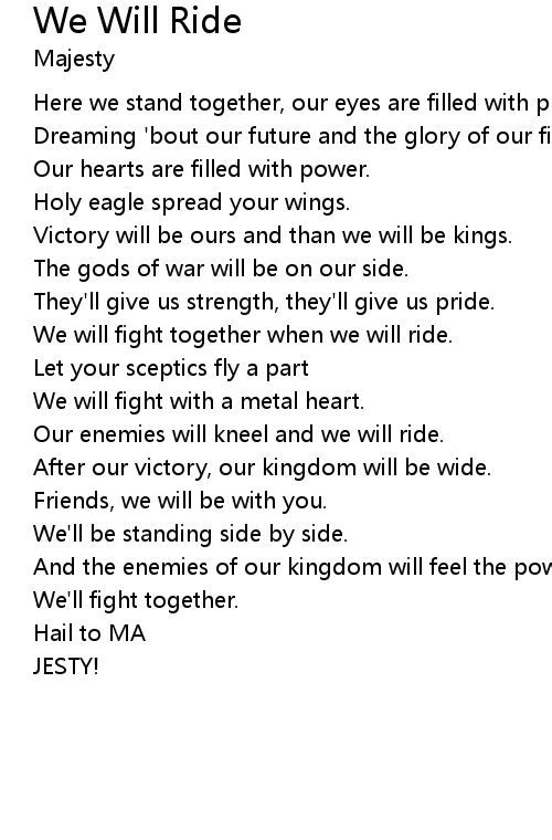Our enemies will kneel and we will ride. |