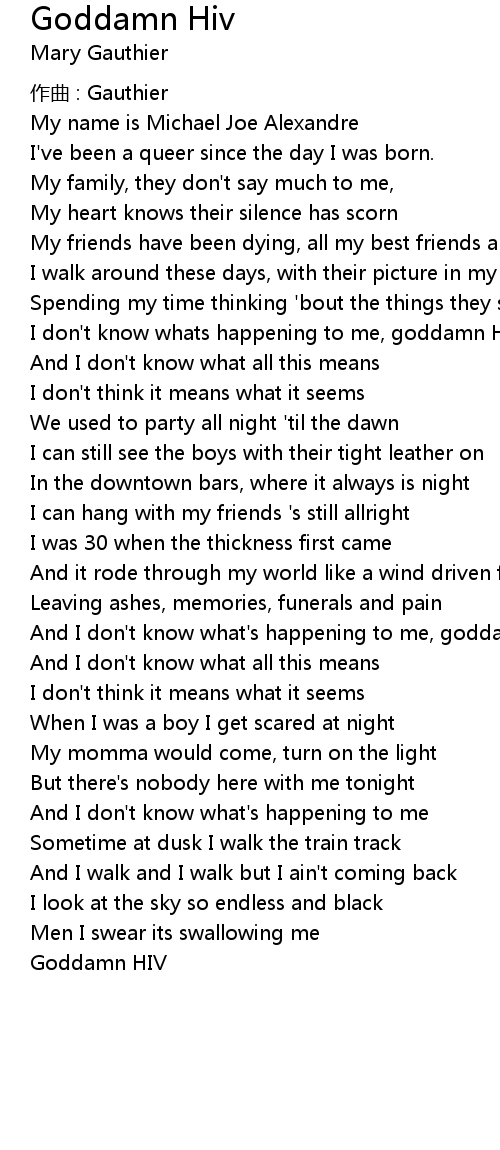 | And I don't know what's happening to me, goddamn HIV | |