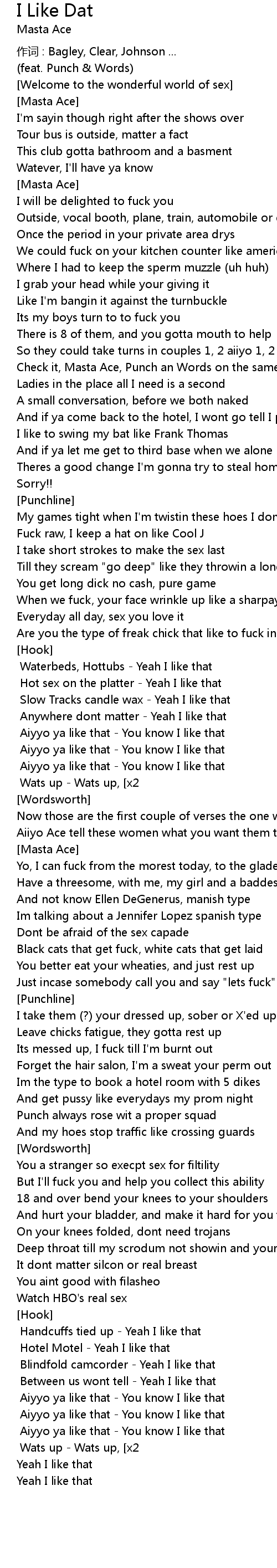 | Wordsworth Aiyyo ya like that You know I like that | |