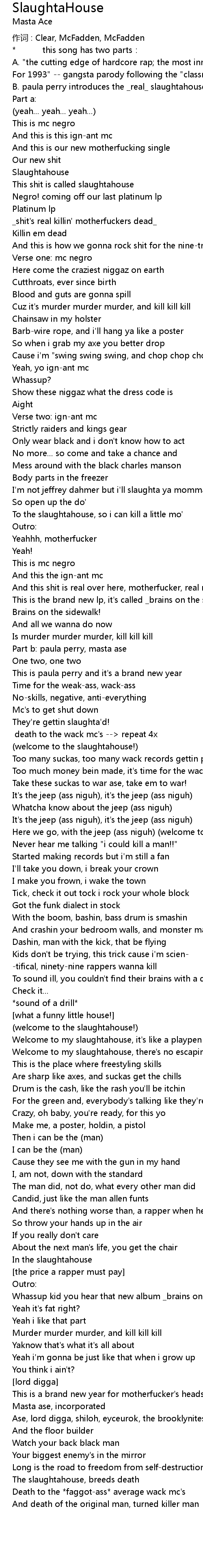 | Death to the *faggot-ass* average wack mc's | |