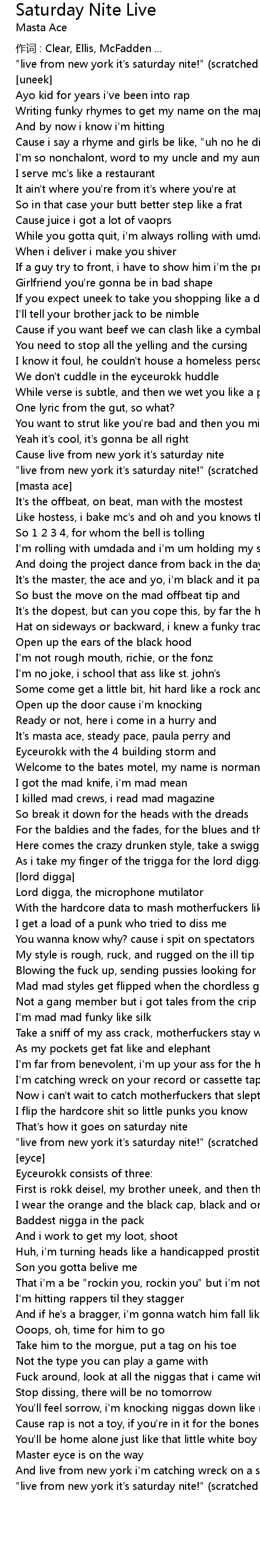 | 歌曲 | Saturday Nite Live |