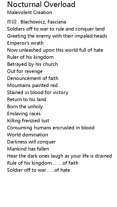 | 歌曲 | Nocturnal Overload |