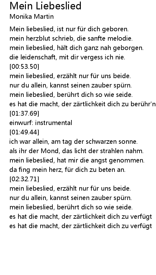 | [00:55.10] | mein liebeslied, erz hlt nur fü r uns beide. |