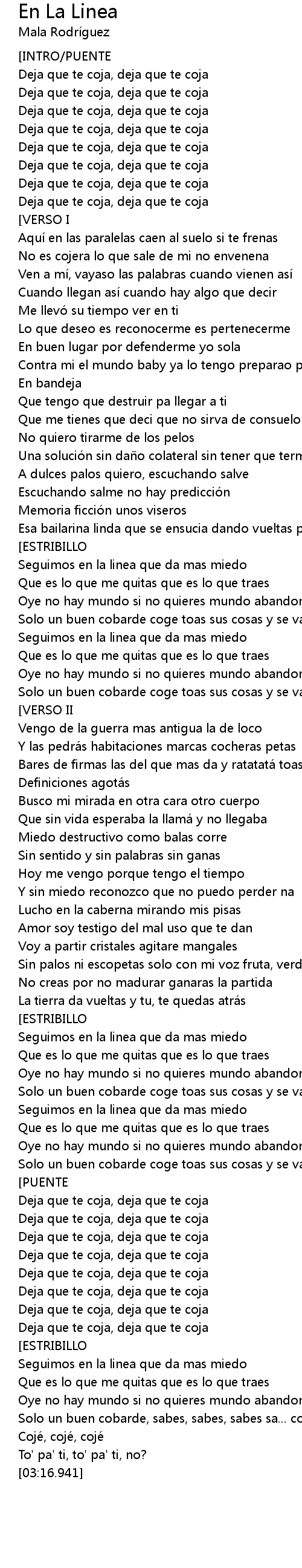 | [00:05.413] | Deja que te coja, deja que te coja |