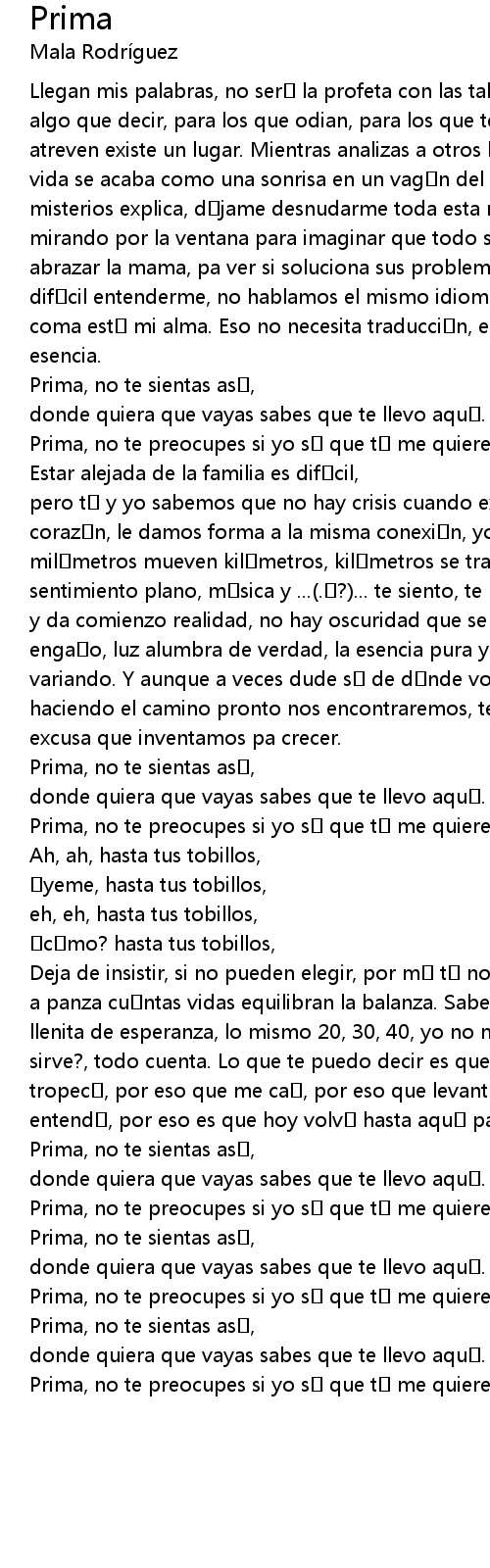 | Prima, no te sientas as, | |
