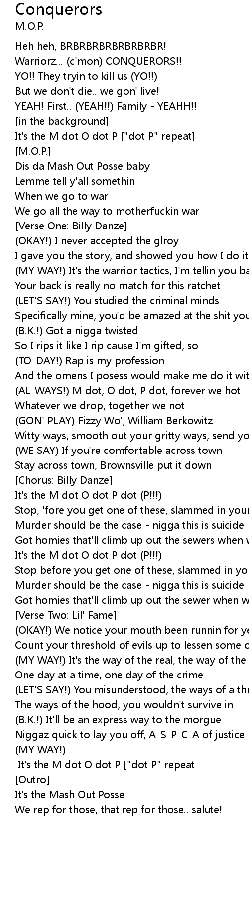 [Danze] It's the M dot O dot P ["dot P" repeat] |