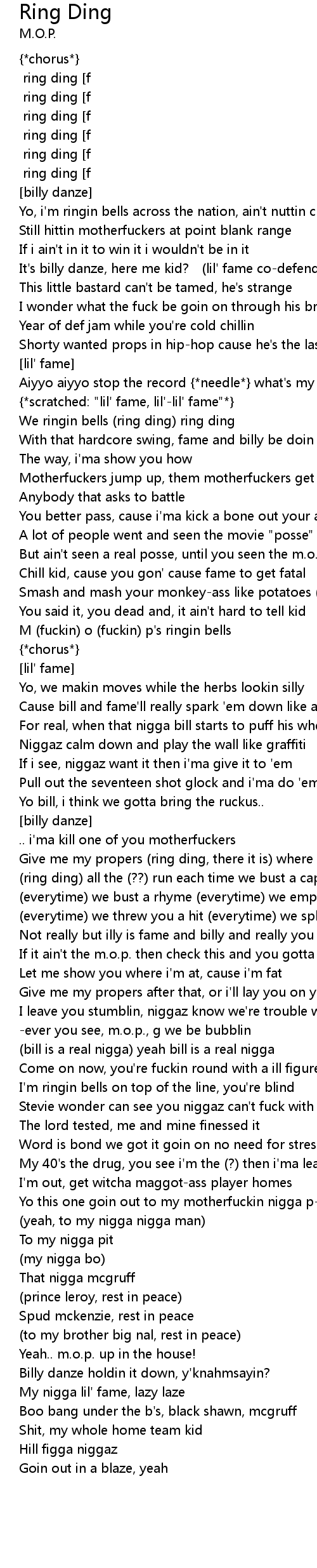 | M (fuckin) o (fuckin) p's ringin bells | |