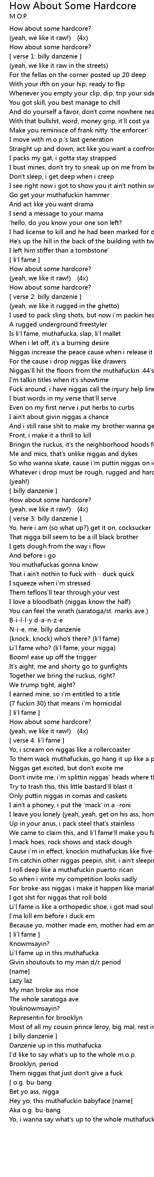 | Yo, i wanna say what' s up to the whole muthafuckin m. o. p. boyyeee |