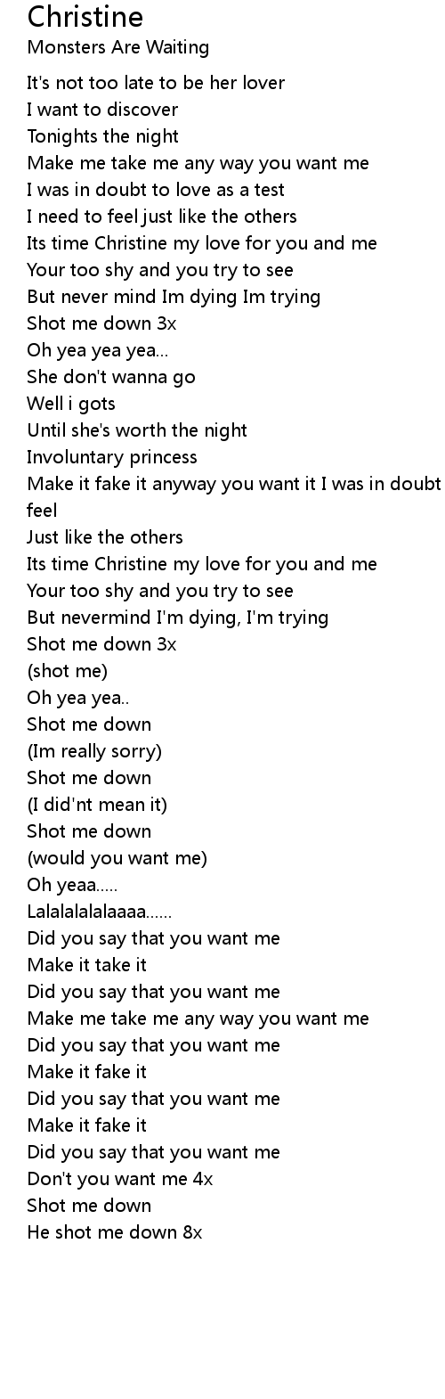 Make it fake it anyway you want it I was in doubt to love as a test i need to feel |