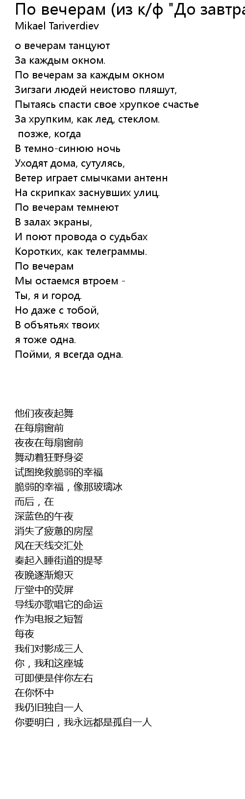 | 歌曲 | По вечерам (из к/ф "До завтра") |