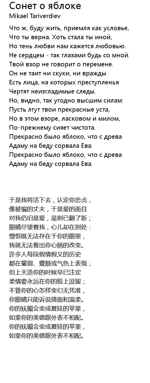 | 歌曲 | Сонет о яблоке |