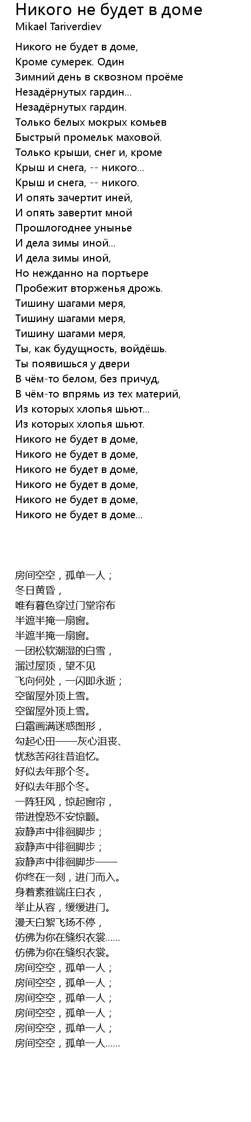 | 歌曲 | Никого не будет в доме |